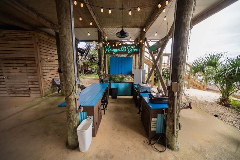 The layout of Honeysuckle Blue was created to provide fellowship and spectacular views from almost every room inside. Before you even enter the home, you'll appreciate the large waterfront ground level with an amazing view of the Mississippi Sound, fishing pier and boat lift along with a hanging swing, outdoor furnishings and outdoor grill. Honeysuckle Blue also has concrete parking under the home, convenient mid-level full bathroom and an outdoor shower. The lower level also boasts a picture perfect swimming hole that is approximately 4.5-5 feet deep with a sanded bottom.