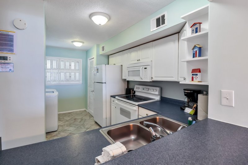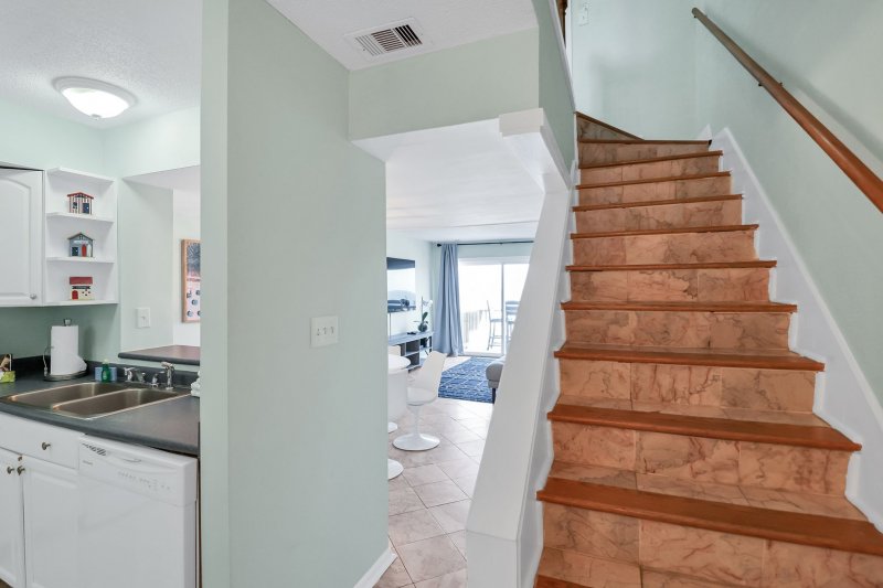 Wake up to the sound of the waves and sip your morning coffee on the private balcony as the sun rises over the Atlantic. Inside, the open-concept living and dining area was designed for relaxation, with large windows framing the ocean, comfortable seating, and a fully equipped kitchen stocked with everything you need for a long-term stay. A half bath and full-size washer and dryer on the main level make daily living effortless.
