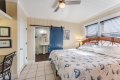The master is situated privately on one end of the home. With charming paneled walls and more vintage, painted-wood ceilings, you'll have restful, quiet nights in the king-sized bed beneath a bank of ocean view windows. His and her closets and a lighted dressing table round out the space. Entry to the private master bath is via a barn door, and a timeless black-and-white color scheme lend to the overall period feel of the dual pedestal sinks and subway tile shower. Situated above the dressing table is a 32" flat screen, smart TV that is Roku ready. Luxurious linens and fluffy white towels provide all of the comfort you'll need for your beach vacation.